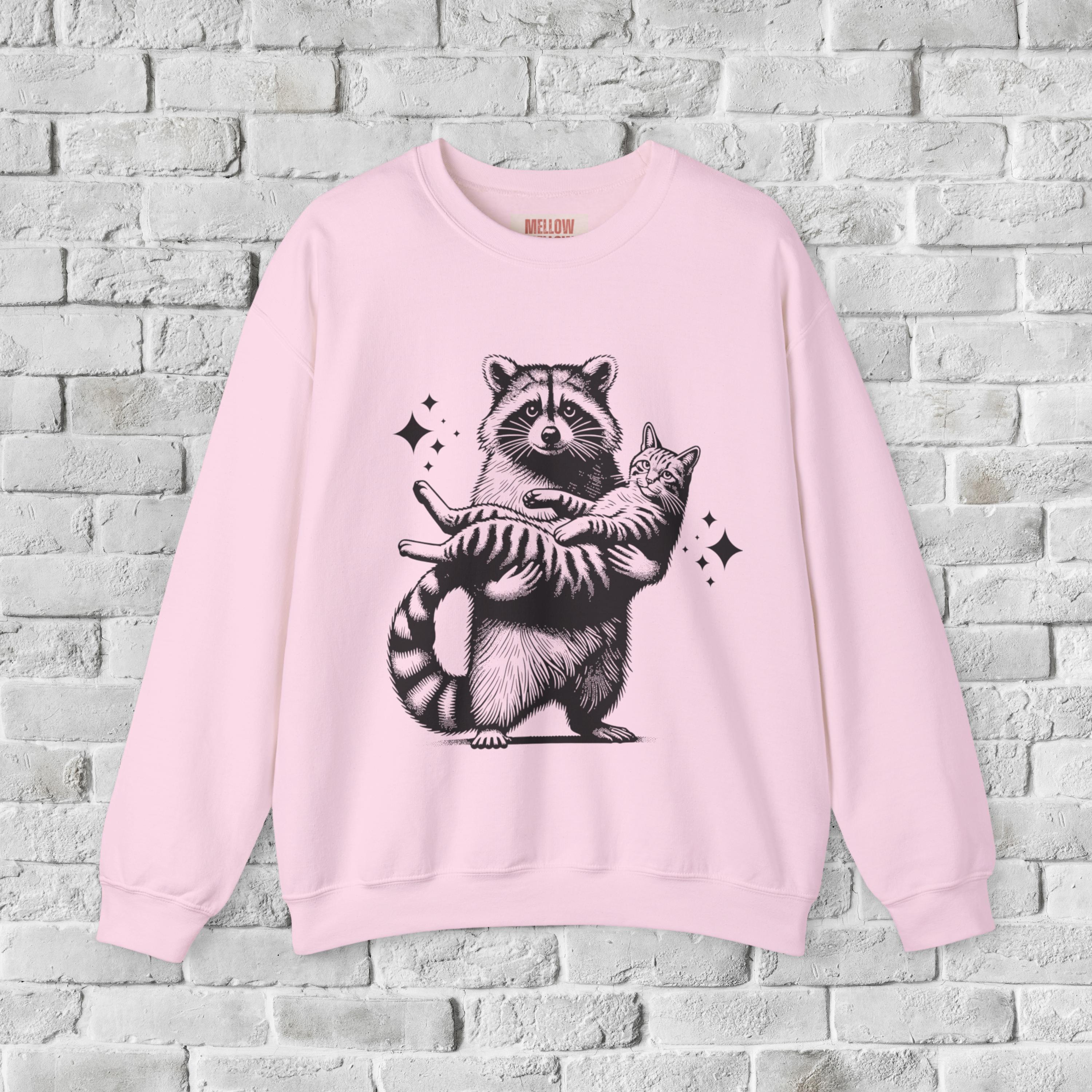 🐾 Raccoon Holding a Cat Shirt | Cute Animal Graphic Tee & Sweatshirt 🐾